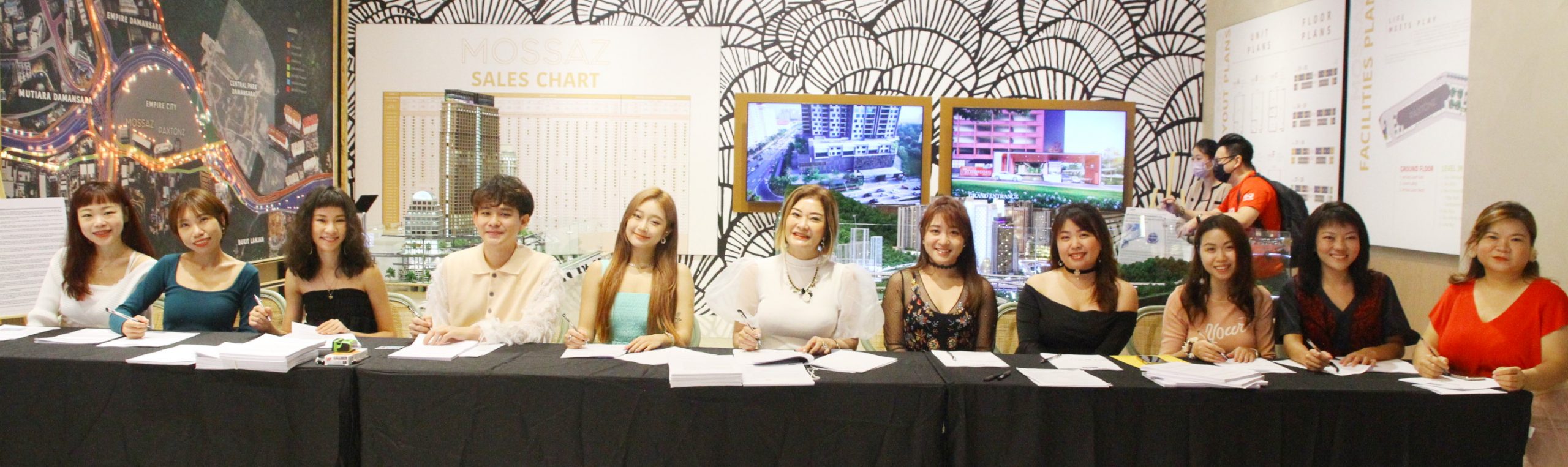 活力集团导师们进行房产签约仪式。左一起是廖慧晶、黄荟榆、张淑敏、范杰祺、杨荔晴、郑莉凌、郑婉婷、郑鑫庭、彭翠榆、何美婷及吴彩燕 。(黄玲玲摄)