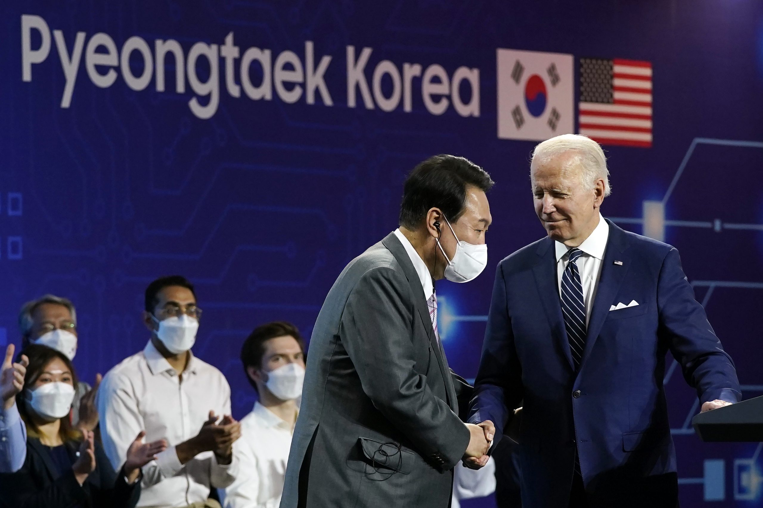 此次会谈的核心议题包括应对朝核、经济安全及区域合作。两国领导人前一天共同视察了位于京畿道平泽的三星电子半导体工厂,就将韩美同盟发展成为技术同盟达成共识。