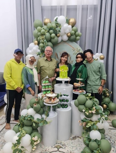 根据一名网民沙林依斯干达在推特所上传的照片,该名挽着纳吉手的女子名为茜玛。照片中的4位年轻男女则是她的女儿及女婿。