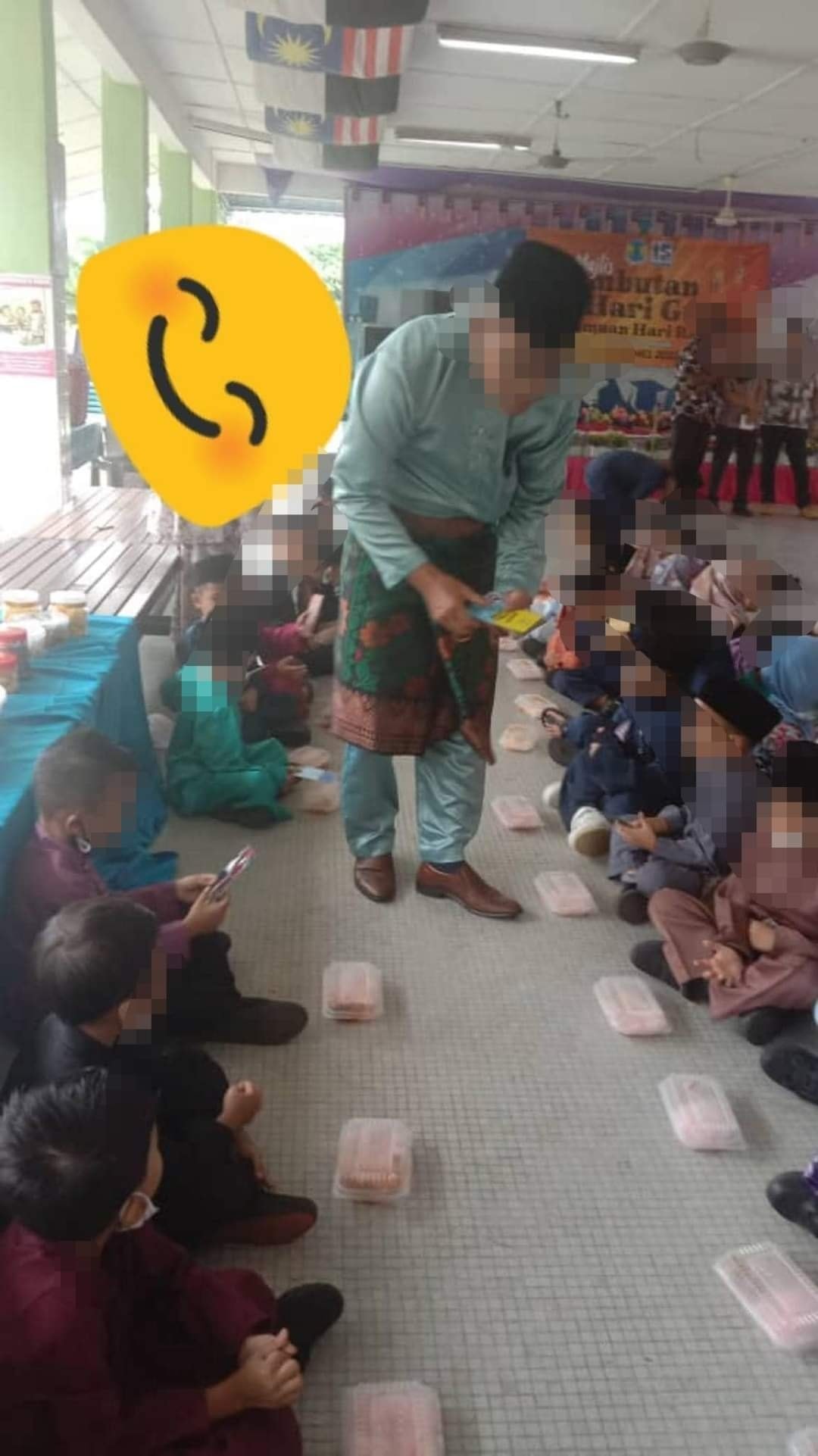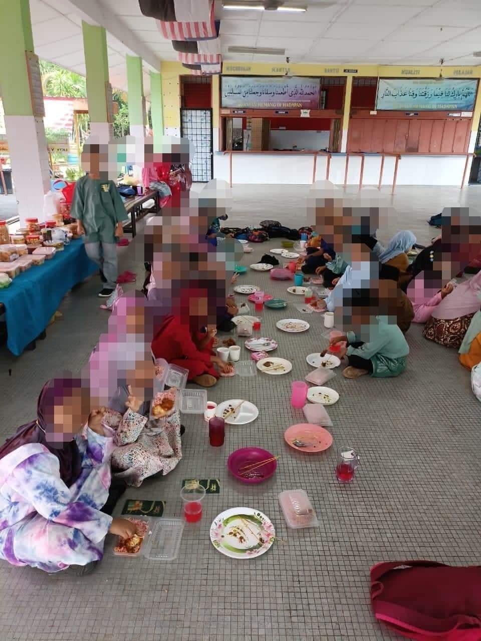 网红教师莫哈末法德利在社交媒体脸书上分享几张照片并写道:“在学校一些活动上,孩子们不应该坐在地面上吃饭,因为地面非常不卫生。”