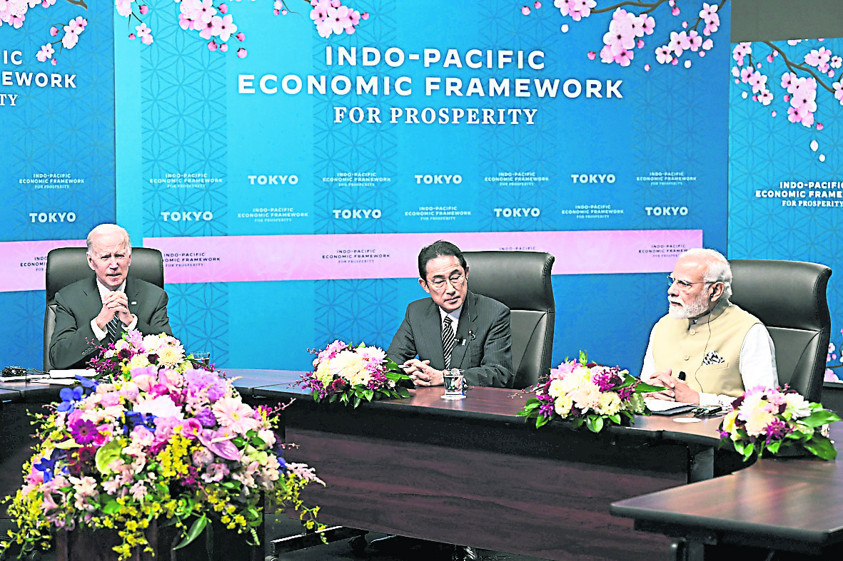 拜登与日本首相岸田文雄召开新闻发布会时说,美日将与其他11个国家一起启动印太经济框架。他说:“这个框架是一个承诺,与我们在这个地区的亲密朋友和伙伴合作,应对确保21世纪经济竞争力最重要的挑战。”