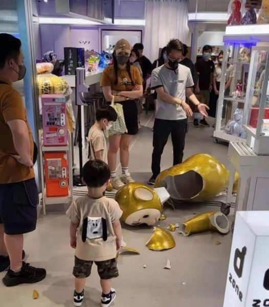 现场监控画面显示,男童轻靠玩偶一侧,玩偶就瞬间倒塌破碎,吓得男童脸色铁青。男童母亲表示,玩具店员工第一时间指控儿子故意去踢玩偶,她和丈夫立即道歉赔钱,支付超过3万元港币(约1.6万令吉)。
