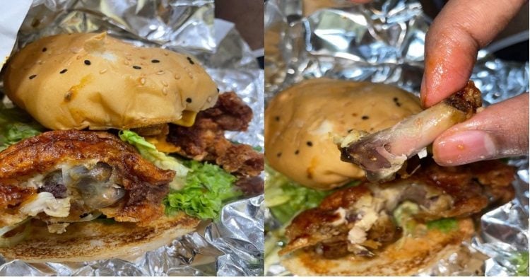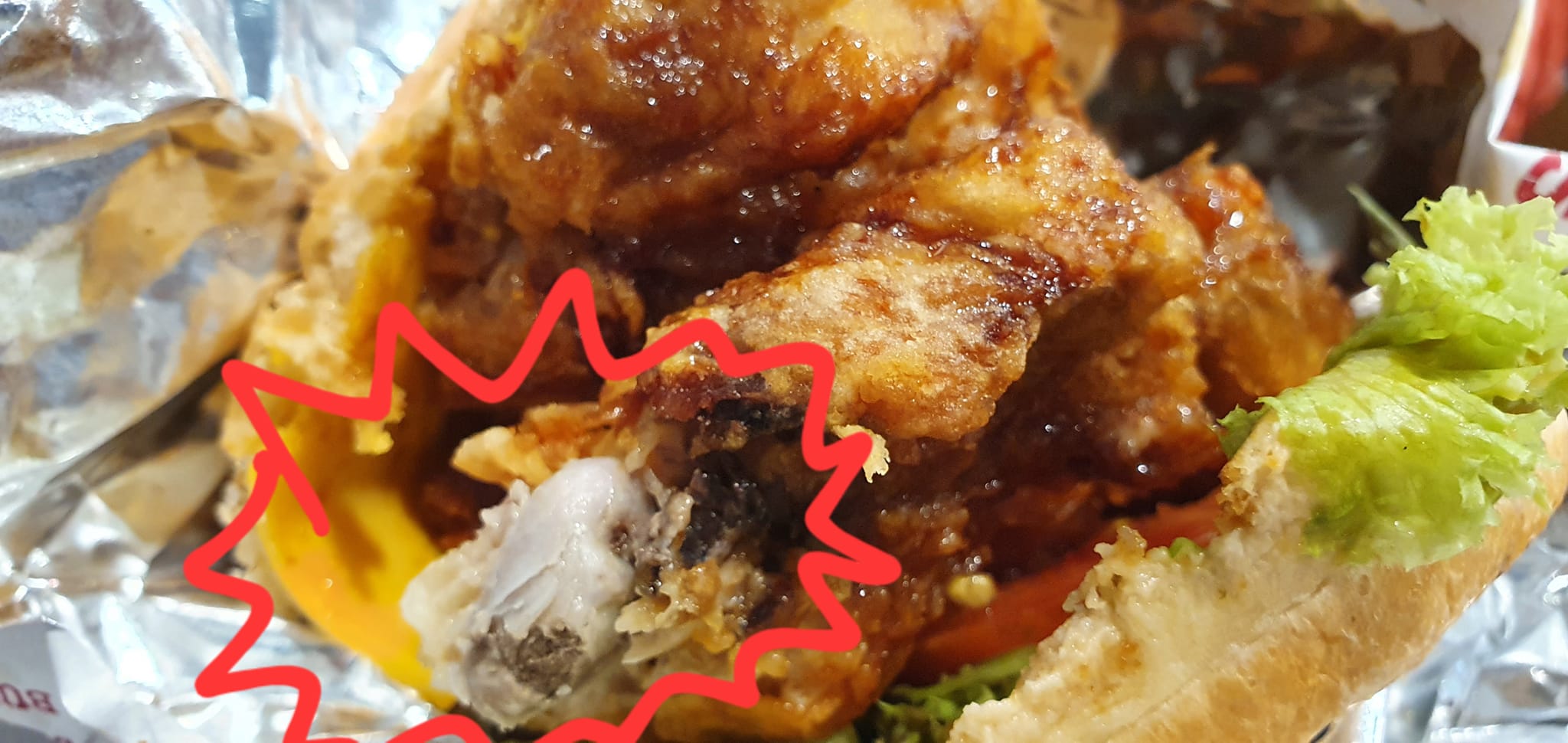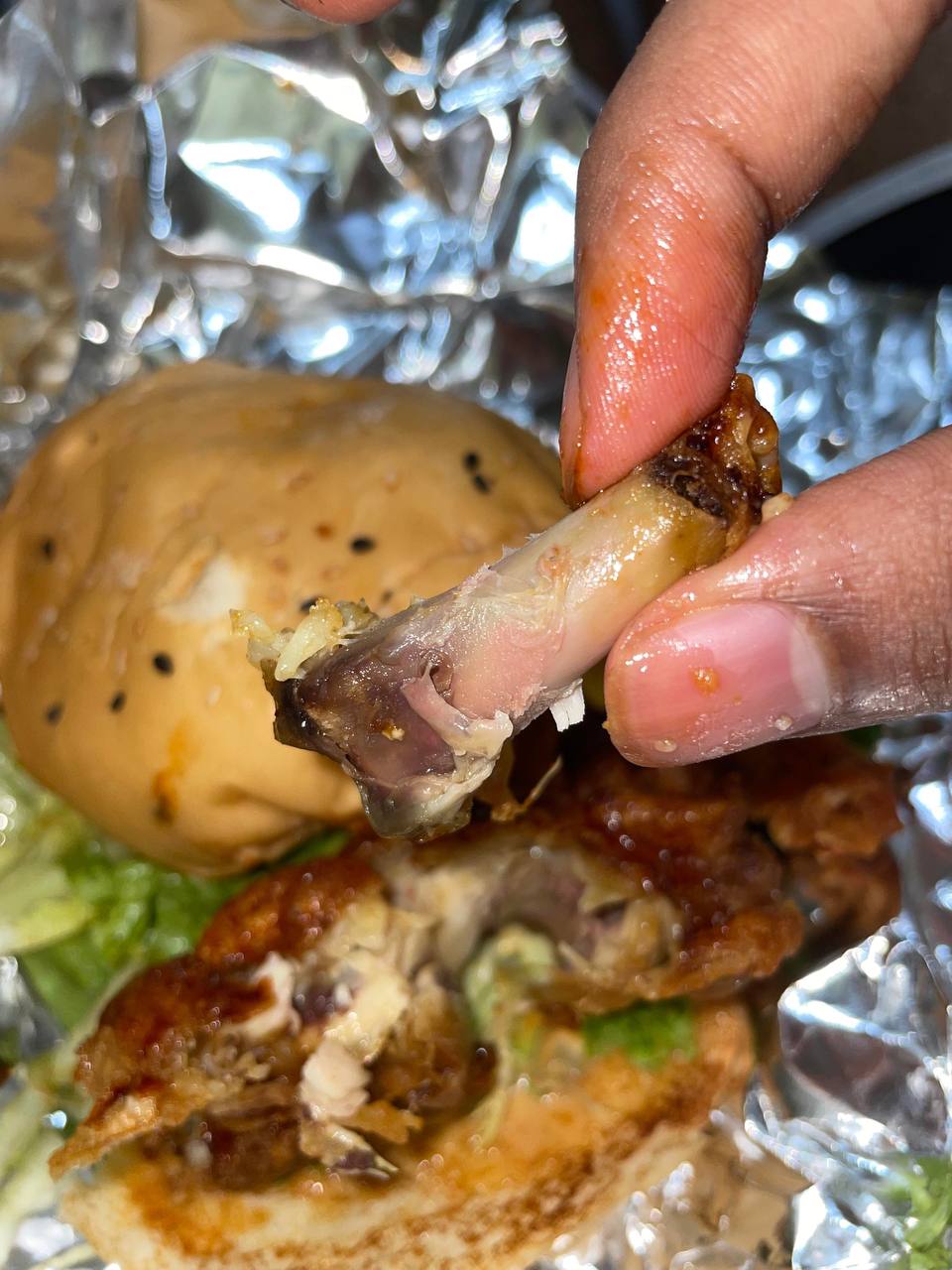 新加坡网媒Mothership报道,男子德克斯特·凯恩吃着韩式炸鸡连锁店(4Fingers)的“Jawbreaker”汉堡时,因咬到鸡骨头而让他倒尽胃口。