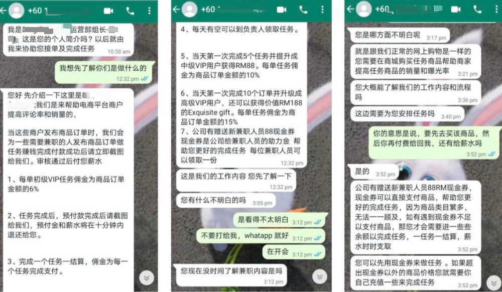 “事主还被要求在指定网站开设账号并储值后才能接‘任务’,起初‘任务’目标是购买价格数十令吉的物品,但后来却必须支付上千令吉购物,甚至单笔购物逾6000令吉才能完成任务。”