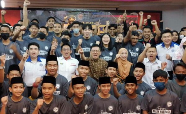 郑联科(中)出席“活跃青年之友计划”维修摩托车课程开幕仪式,与筹委会成员及学员合照留念。第三排左一起为青运彭亨州分会秘书李铭、轩摩托集团代表符训豪、彭州青体局助理局长法拉(左四)及彭 亨青年理事会第一副会长张纶升。(梁光辉摄)