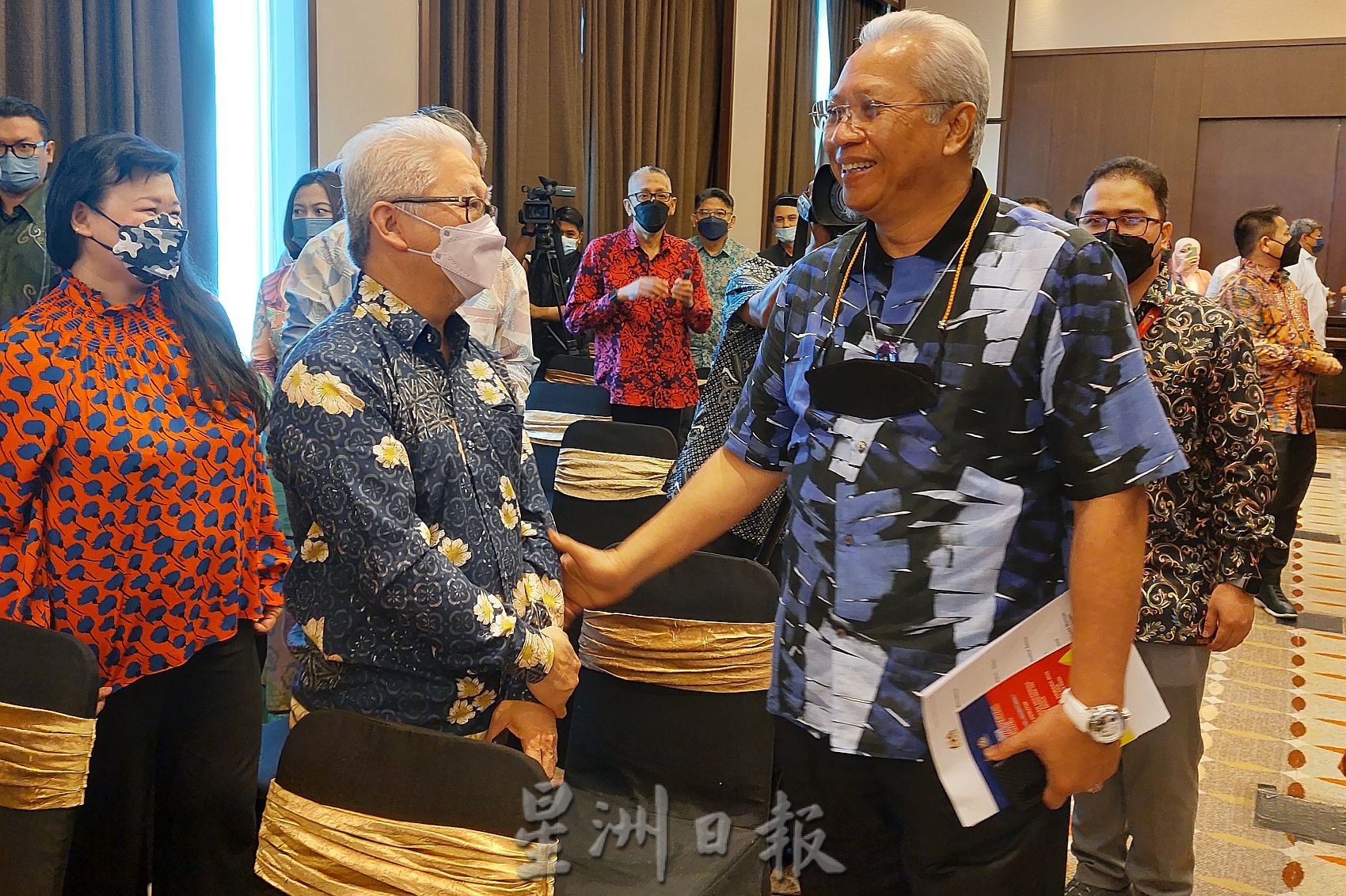 安努亚慕沙(右)与郭清江(左二)交流。(陈淑婷摄)