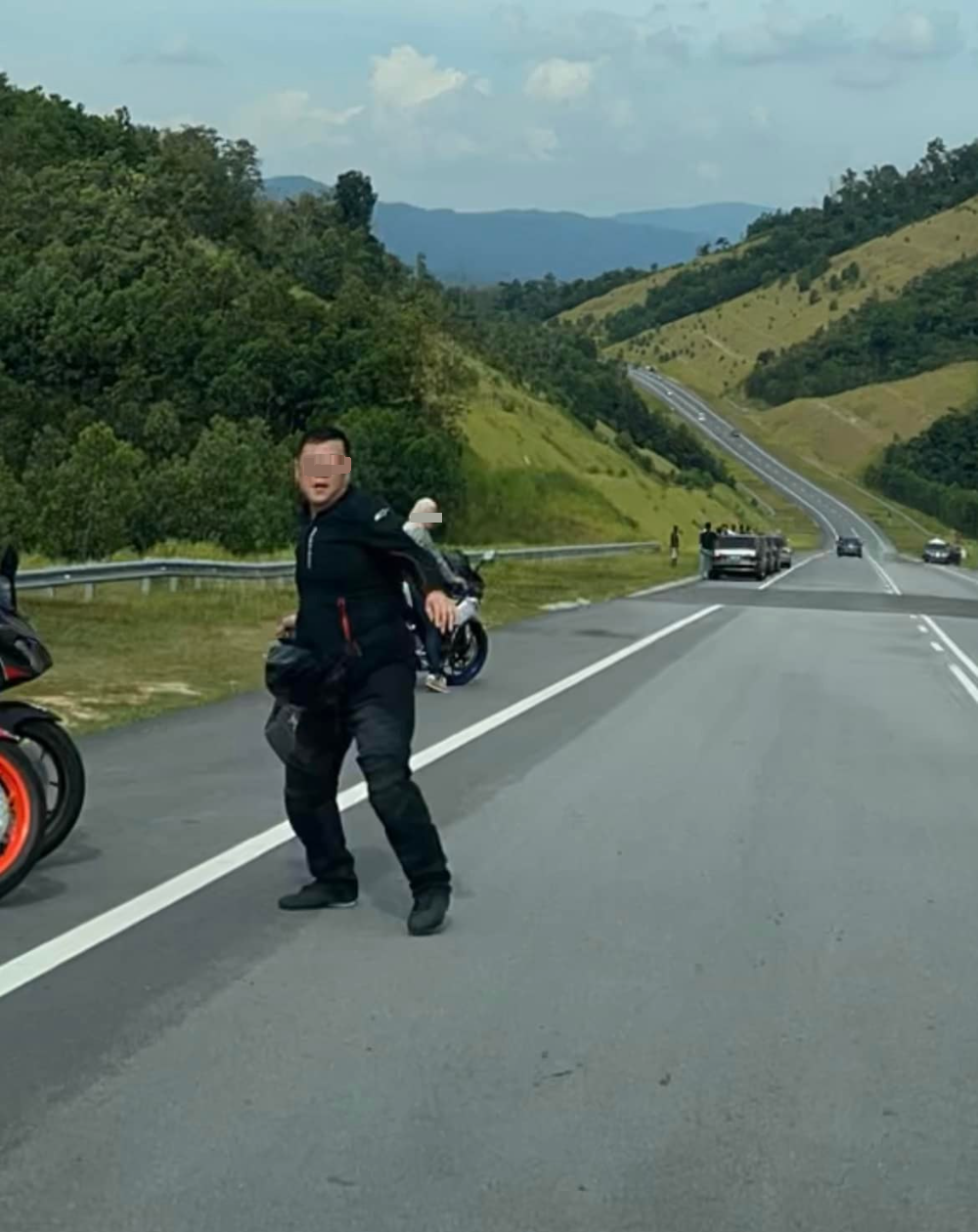 “警方初步调查发现,有关事件是于昨日下午发生在沉香班底路,一群摩托车骑士在紧急车道停留,当摄录行车记录画面的车子经过时,其中一人作状向其抛掷物件。”