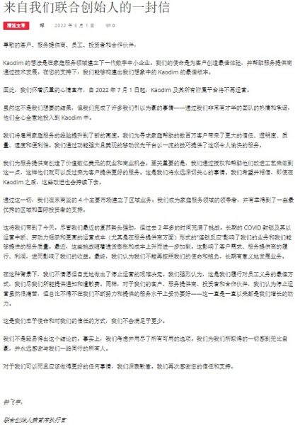 Kaodim的首席执行员兼联合创办人钟飞宇昨日在平台官网发布一篇题为“来自我们联合创办人的一封信”,向客户、服务提供商、员工、投资者和合作伙伴宣布了该公司即将结业的消息。