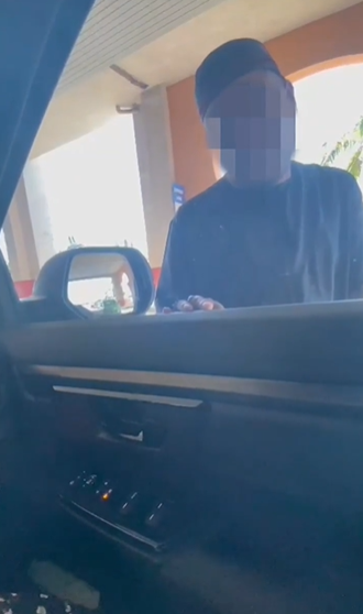 34岁努鲁因星期二(5月31日)驱车前往LTSIP,在车上等候丈夫从雪州梳邦苏丹阿都阿兹沙机场(LTSAAS)飞抵时,突遇到一名陌生男子敲车窗乞讨。