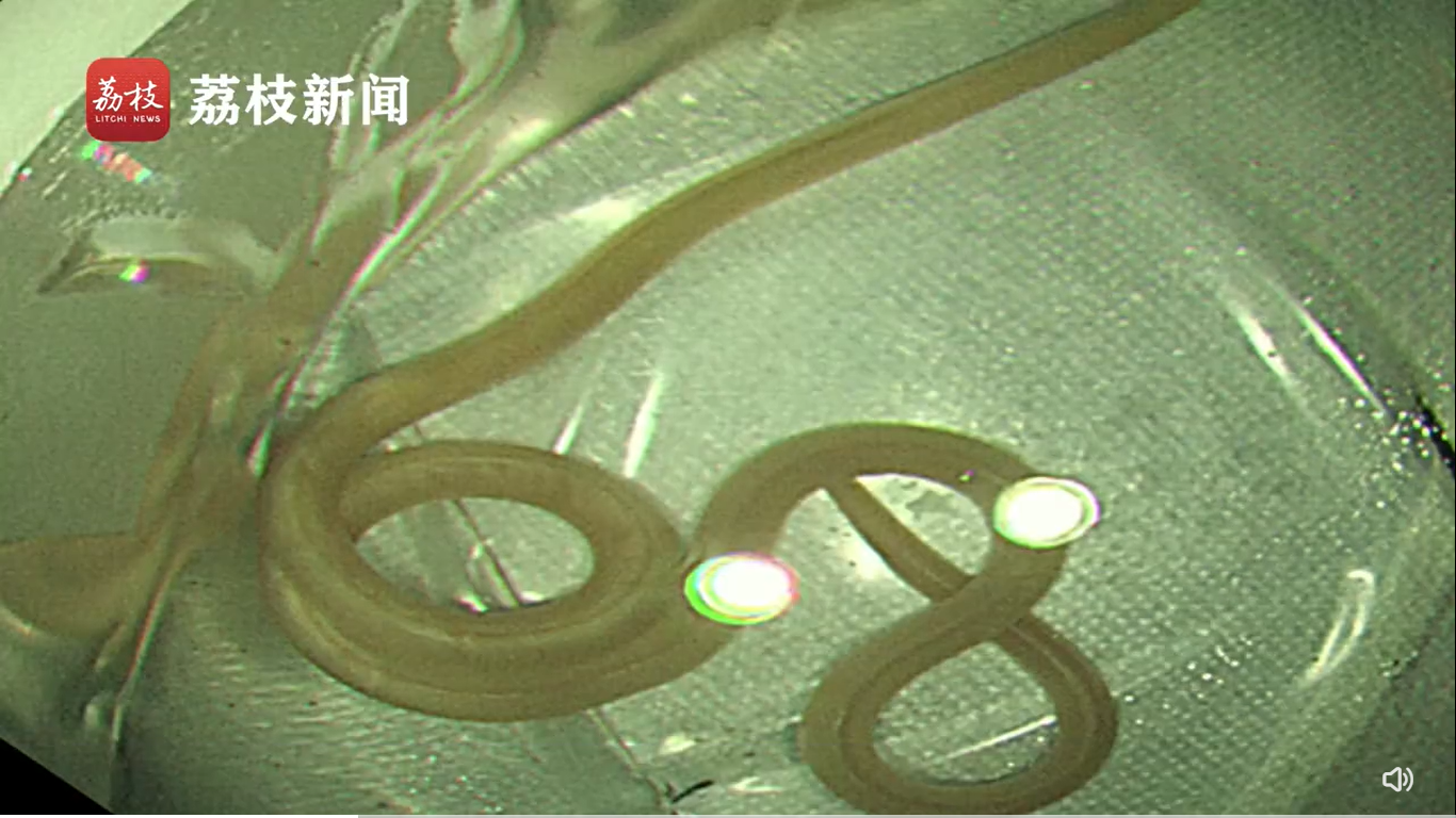 根据江苏省广播电视总台荔枝新闻报导,这名来自江苏扬州的女子到扬州苏北医院就诊,医生经查发现她的腹部竟藏有一条又长又肥的蛔虫。