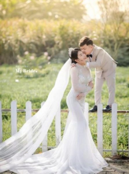 站栏杆拍照 爬梯切蛋糕 137公分男娶162公分女