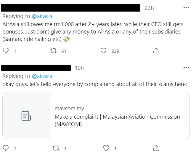 无论如何,这并非亚航首次因为服务问题而受到批评。也有网民分享大马航空委员会(Mavcom)的投诉网站链接,促请民众作出正式投诉。