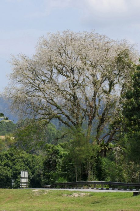 今年2月20日,我看见路旁有棵大树开满了白花,从远处望去,以为它是近年来在本地大受欢迎的风铃木,直到走近了一些,才发现它不是。它没有风铃木那喇叭状、宽大且柔软的花朵。