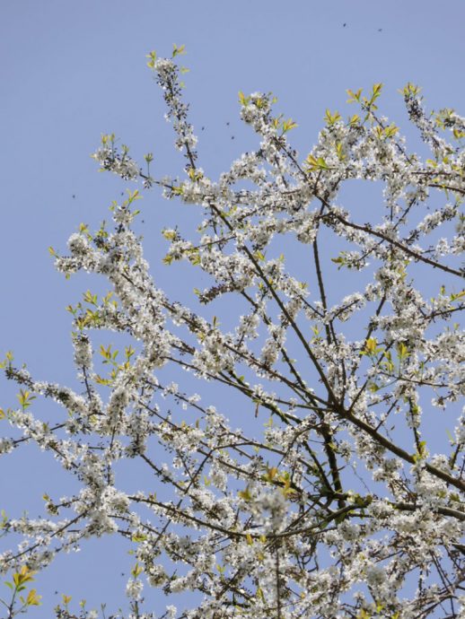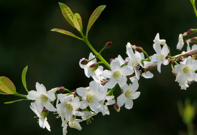 我站在大树下尝试要把它的美丽收入眼帘,却发现被花朵吸引而来的不只有我,还有无数的无刺蜂。无论望向哪个角落,都可以看到有些许无刺蜂在花丛间飞舞和访花。它们的数量如此庞大,让我仿佛感受到那些小白花里花蜜的清甜。
