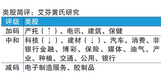 该行补充,科技股目前本益比估值已恢复至历史平均水平,风险回酬算得上是已有起色,只要盈利保持稳定,下跌空间确实不大,然而,鉴于全球宏观经济欠佳,科技股估值回升并非易事,预期在需求更为稳定前,科技股仍存有下行风险,决定将评级调低到“中和”。