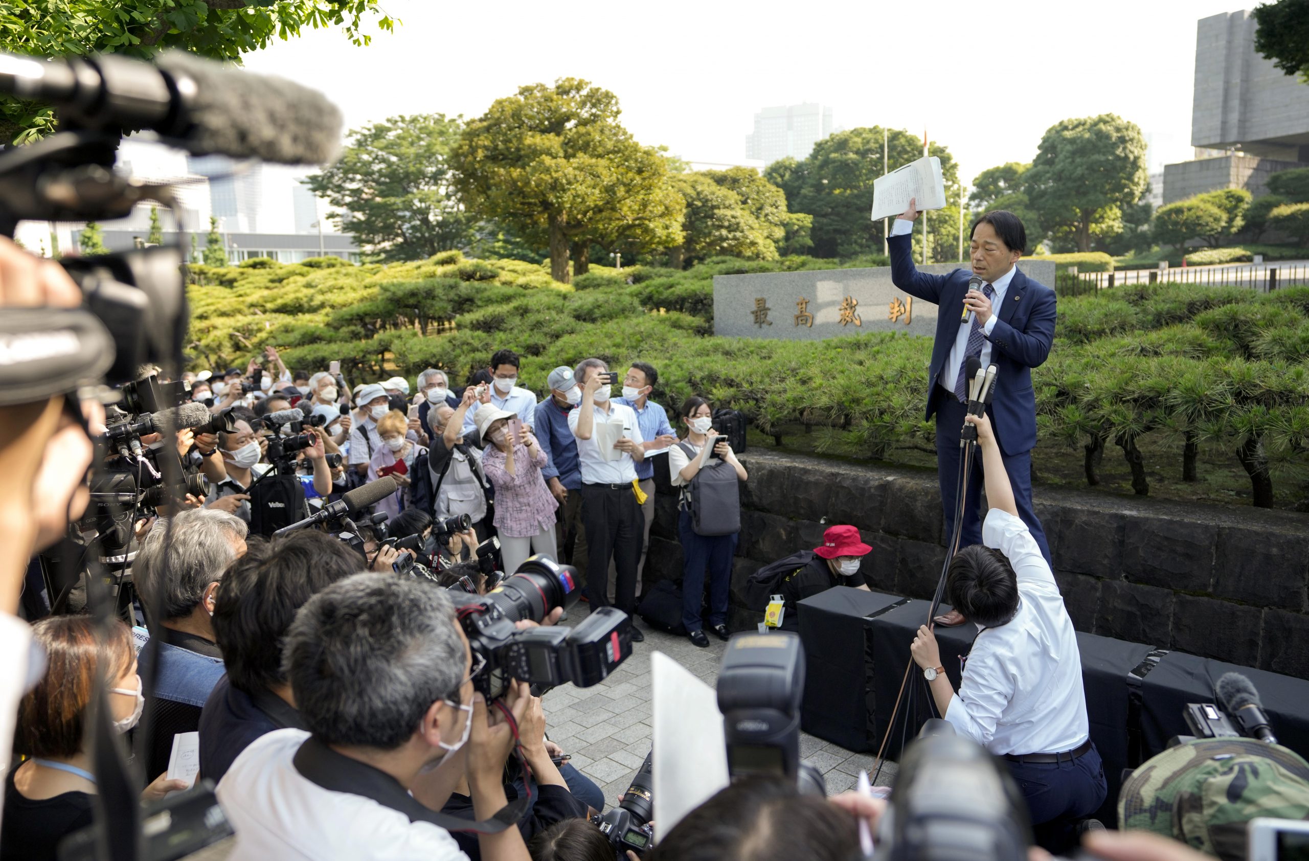 图为代表律师在最高法院外向灾民与支持者宣布法院的判决。(欧新社照片)
