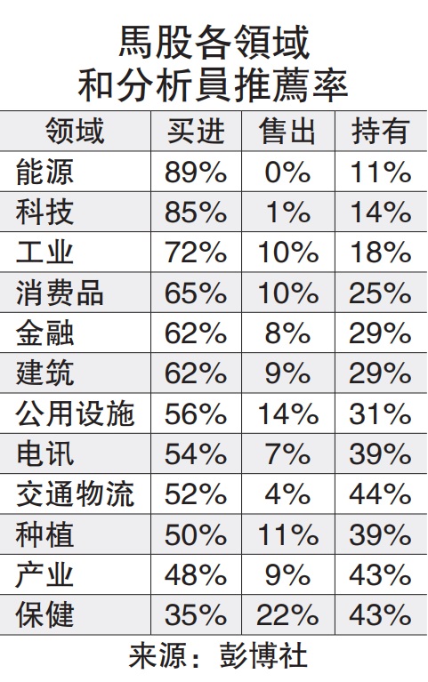 根据大马交易所在5月企业财报季节后所整理的调查分析,分别有89%和85%分析员建议买进能源与科技股,72%推荐买入工业股。