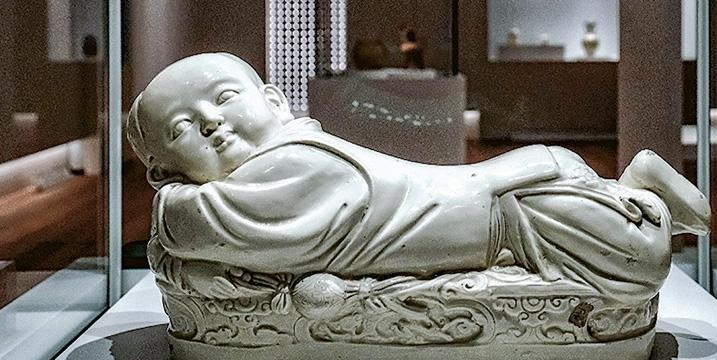 黄续说,同样为北宋时期的“白釉孩儿枕”,由宋代“五大名窰”之一的定窰制作,极为罕有,目前台北及北京故宫各拥有一件藏品,即将在港展出的正是由后者借出。他表示,孩儿枕甚受清代乾隆帝所爱。乾隆帝曾为此赋诗多首,其中一首谓:“伏犹曲四体,醒自瞪双睛。怜尔供人寐,已恒寐不成”。