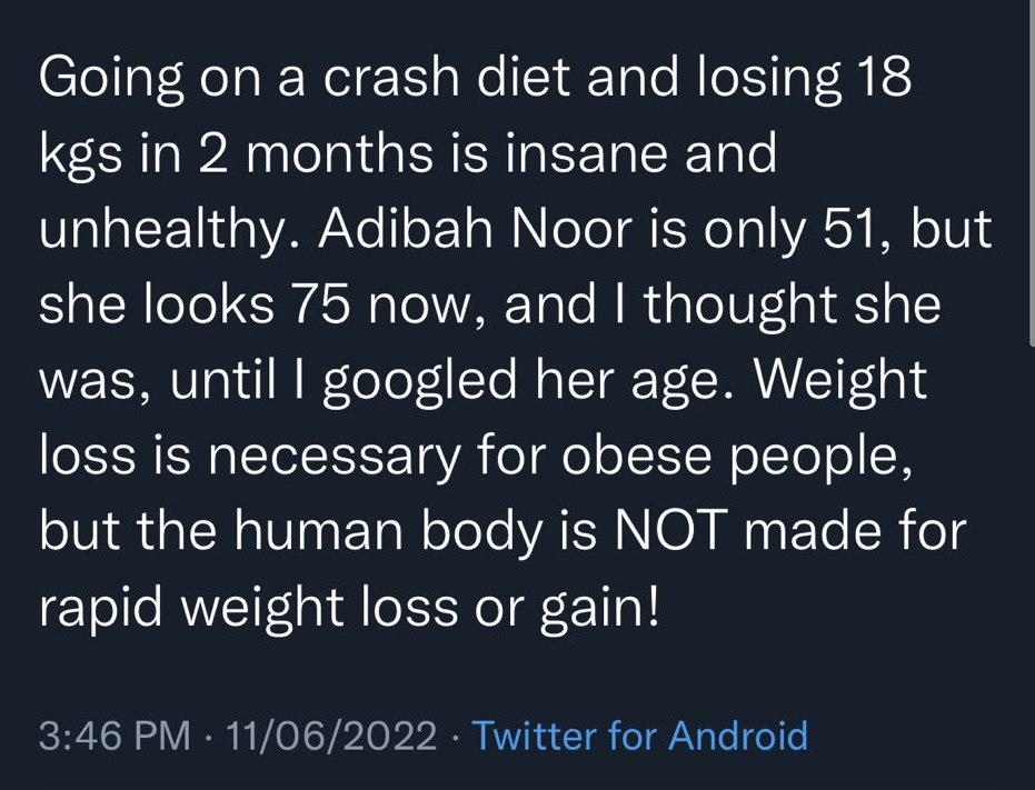MedTweet.MY发起人凯鲁哈菲兹医生说,如果看到别人暴瘦,尽可能不要多加揣测。