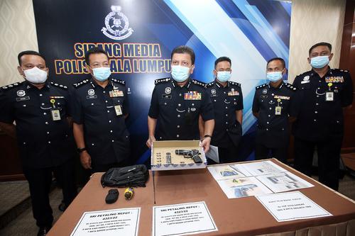 吉隆坡总警长拿督阿兹米今日召开新闻发布会时指出,警方是针对一宗涉及案值69万3000令吉,于去年11月11日发生在蕉赖皇后镇某住宅的入屋抢劫案,于昨日晚上10时在隆市沙叻秀展开逮捕行动时发生有关枪击事件。