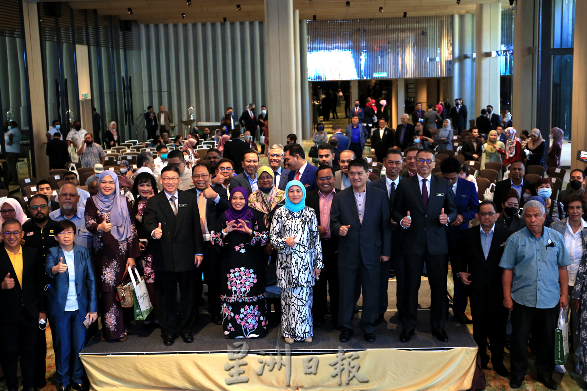 南茜苏克利(中)与国内旅游业者和相关行业代表举行闭门对话会后,拍摄大合照。出席者包括大马旅游同业协会、大马酒店业者协会及马来西亚会展组织及供应商协会等。(林毅征摄)