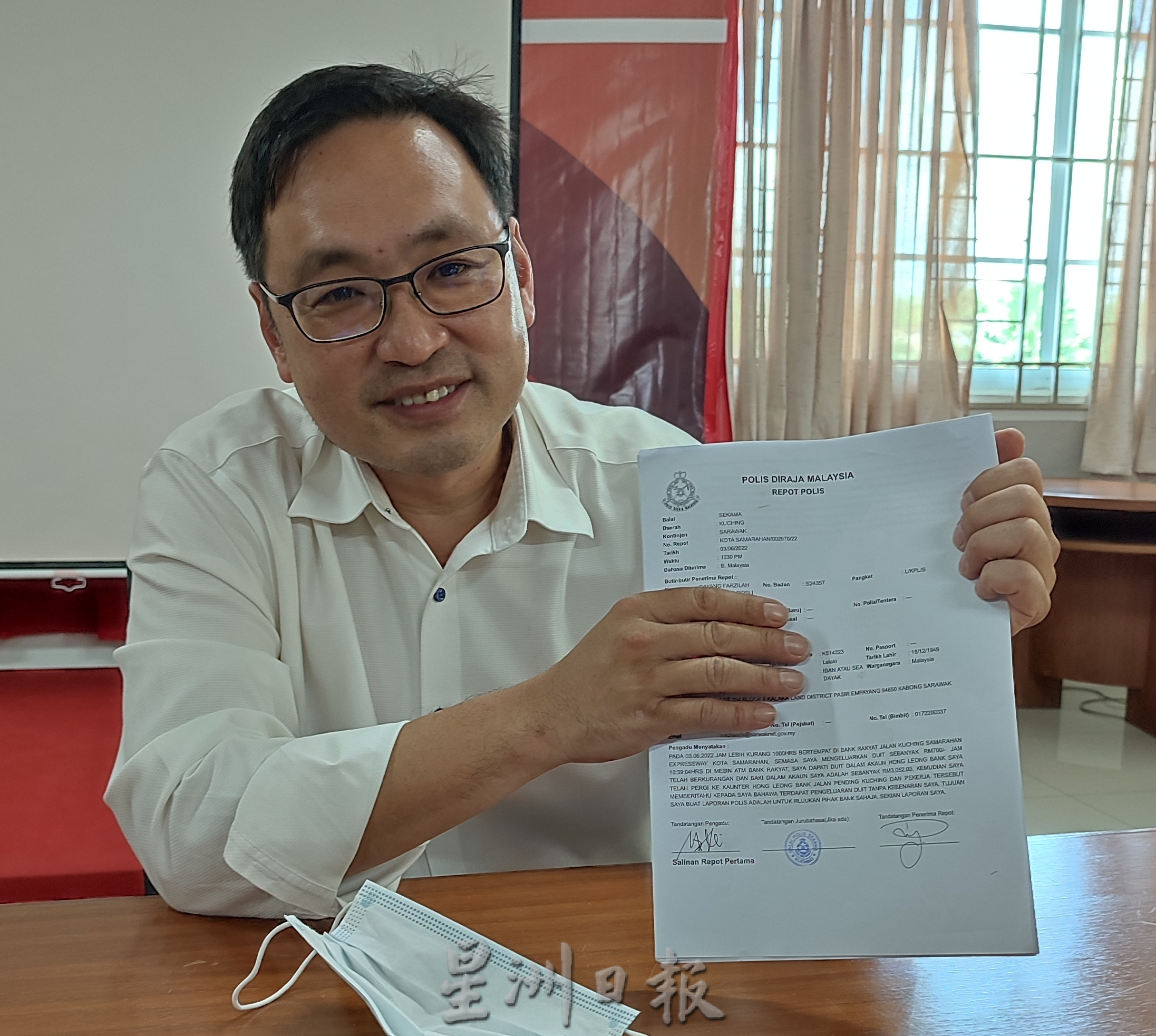 这名退休公务员今日在砂行动党主席兼实旦宾区国会议员张健仁的陪同下召开新闻发布会,指本身在没有授权下,其银行的储蓄户头被进行约60次线上转账,每次转账数额从数令吉至三千多令吉。