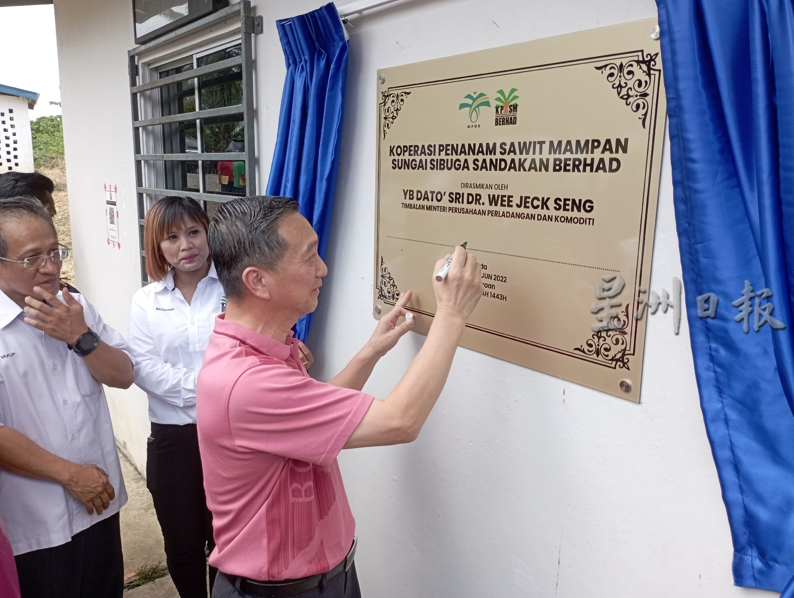 黄日昇今日为双溪西埔架可持续油棕种植者合作社(KPSM)公司称重中心主持开幕后,向记者说,e-FFB系统将检测所收购的棕油果,让小园主的收入得到保障。