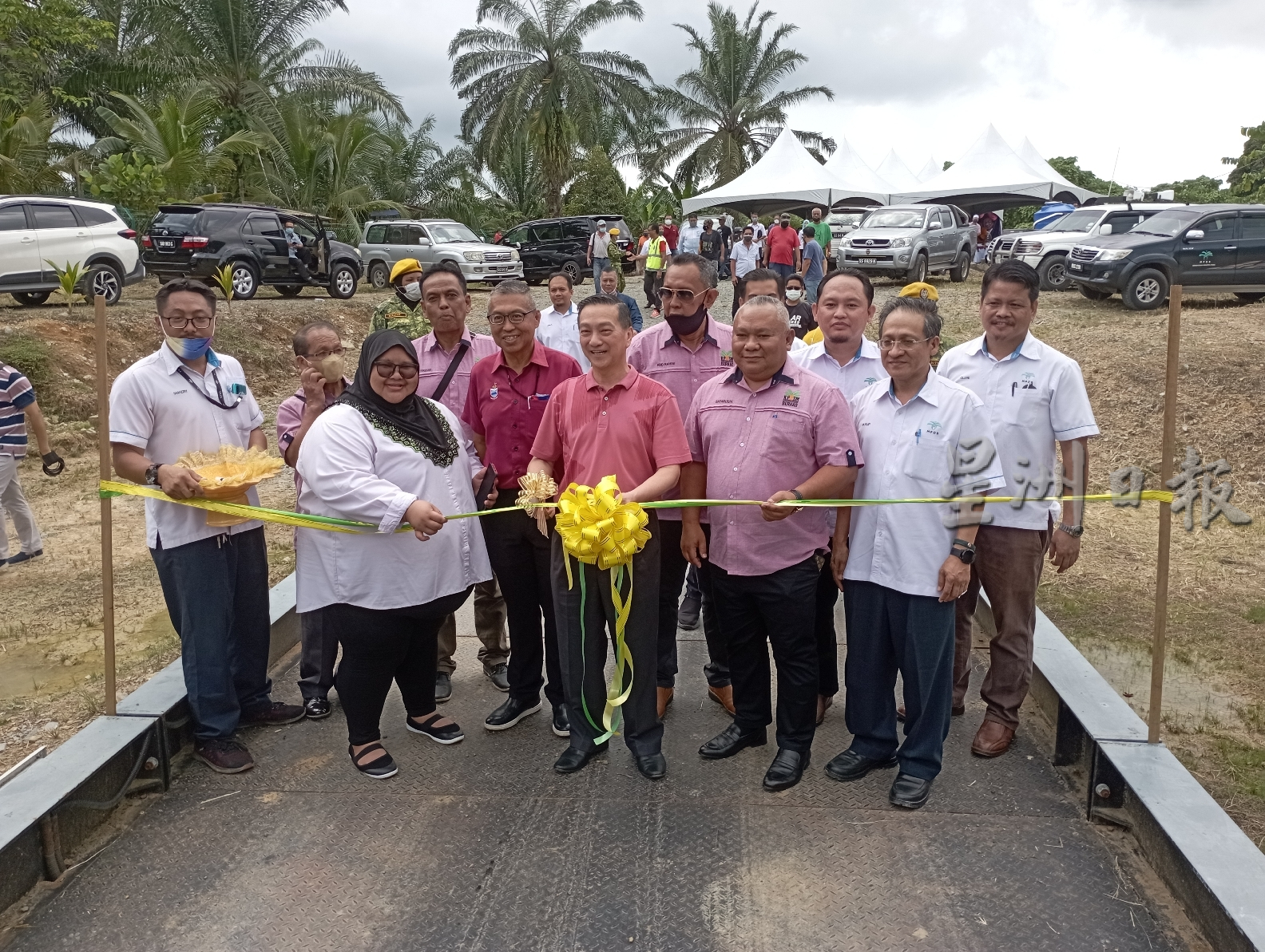 黄日昇也为双溪西埔架KPSM公司主持开幕仪式,并见证20万令吉称重中心设备采购费移交仪式。