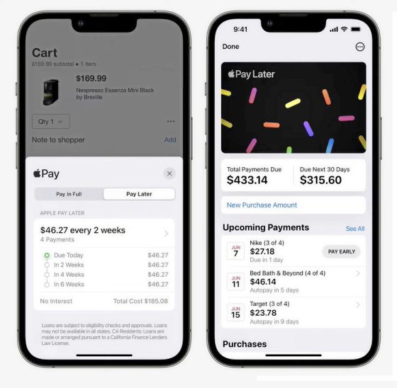 当他们使用“Apple Pay”购买高价商品时,无需立刻缴付全款,而可以选择BNPL的形式,每个月摊还账单,以减轻债务压力。从心理学来说,BNPL无形中亦会促进消费,因为消费者可以先把商品带回家,之后再慢慢还清账单。与此同时,消费者看到价格后也不会有任何犹豫,只要确保自己每个月有能力缴付款项即可。