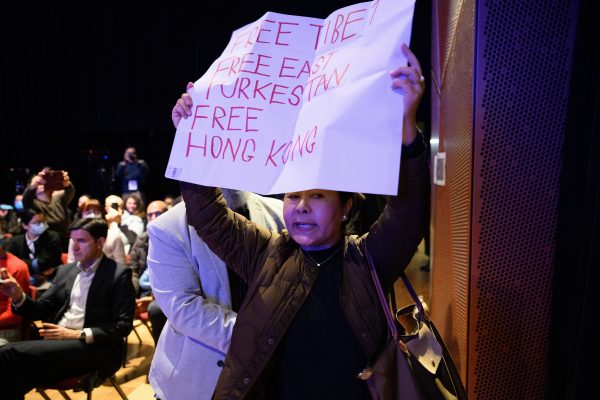 有抗议者指责科技大学不该邀请“独裁政权的代表”,并指责中国政府对新疆维吾尔人实施“种族灭绝”。还有人举着“自由西藏”的牌子,或站起来称自己是维吾尔人,“不是恐怖分子”。也有人批评中国的审查制度,香港和西藏人民无法自由表达观点,都被请离场。