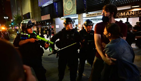 亚利桑那州首府凤凰城有数千名示威者,周五晚上包围州议会抗议最高院裁决。警员施放催泪弹驱散示威者,有目击者指警员事前没有警告。