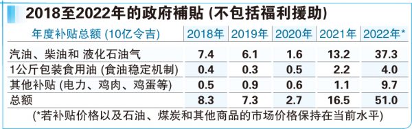 他今天发文告指出,在这773亿令吉的补贴中,有高达510亿令吉的补贴是用于汽油、柴油、液化石油气、食用油、面粉和电力补贴。