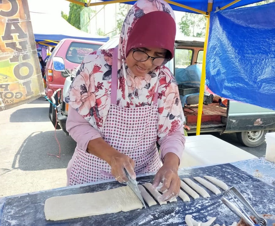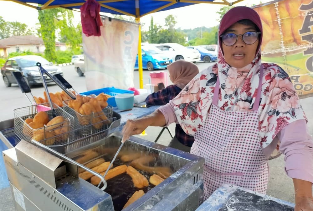 (文冬10日讯)卖油条的马来女小贩一开话便说流利的广东话,引起顾客的好奇,也吸引许多华裔光顾,感觉特别亲切。