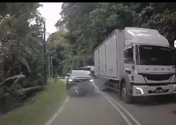 该45秒的视频拍摄到相关四驱车司机在贞德拜狭窄的路段超越一辆货柜拖格罗里时,差点与迎面而来的车辆相撞,对方马上煞车和按车笛,大声责骂四驱车司机危险驾驶,他车上年幼的孩子也在睡梦中被惊醒和哭了起来,庆幸没有醸成意外发生。