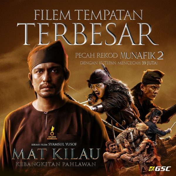 《Munafik 2》2018年曾以3774万令吉刷新本地电影最高票房纪录,如今《Mat Kilau》以3900万令吉票房,成功超越《Munafik 2》成为大马影坛新霸主。另外,电影在大马、汶莱和新加坡上映11天就取得4700万令吉惊人票房,比起《Munafik 2》当年在马来西亚、汶莱、新加坡和印尼缔造4800万令吉的总票房,不少业者人士都看好电影很快能破5000万令吉票房,再写新纪录。