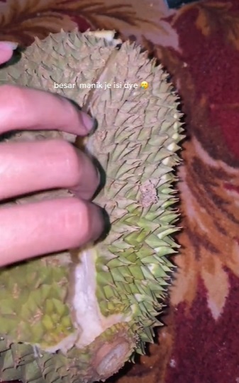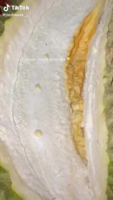 洁哈在上个月24日于抖音上载这条视频,视频显示她把榴梿剖开后,里面竟然不是饱满的果肉,而是只有白色的果壳。