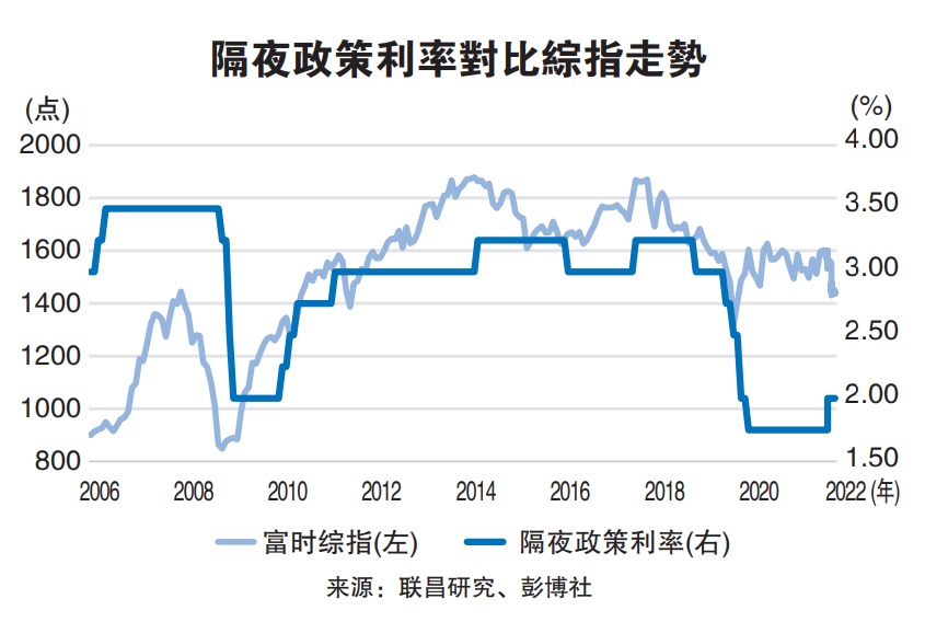 联昌检测马股表现与升降息关系 时指出,按过去升降息的马股走势,降息时马股走高,升息时马股趋跌,尤其是1997至2000年的高息时期。