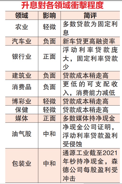 升息料冲击短期情绪 赢家:银行 输家:产业 汽车 消费品