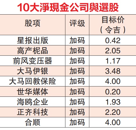 联昌说,拥有高净现金的企业,预测从高利息收入受惠,可增持这类公司股项。