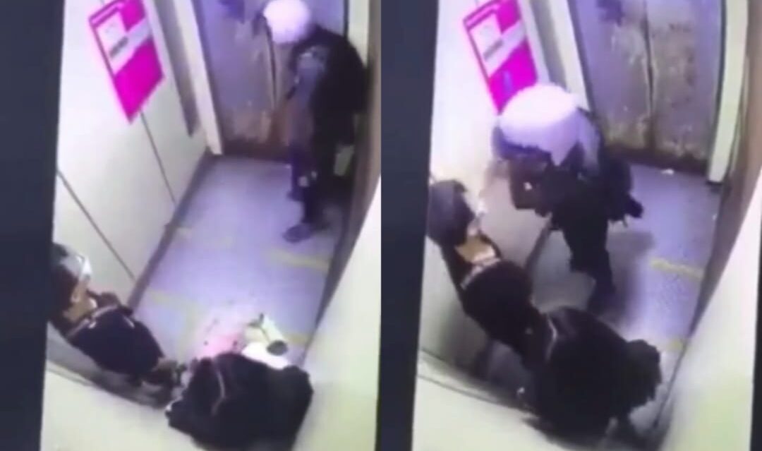 根据网上流传约45秒的闭路视频显示,当时一对情侣跟身穿蓝衣、戴头盔的刀匪乘搭同一电梯,不一会,刀匪亮出菜刀架着年轻男子颈项,男子也下意识做防卫及抓起劫匪的手,其女友显得惊慌失措。