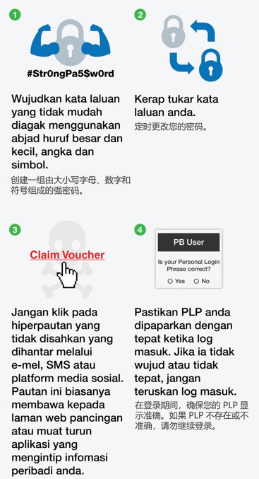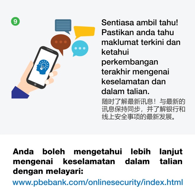 欲知详情,可浏览www.pbebank.com/onlinesecurity/index.html或致电03-2177 3555或电邮[email protected]查询。