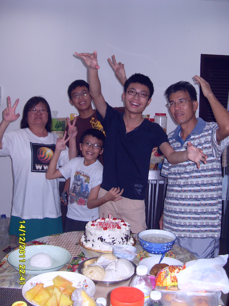 家人在曾裕辉(右二)17岁生日当天为他庆祝,那也是曾裕辉最后一次有父亲(右一)相伴的生日。