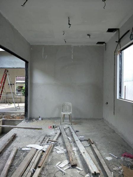 从屋外到饭厅,障碍重重,穿越转角狭小的玄关,再通过前厅进入天井,为了方便作业,加上桌子长度无法转弯,工人们得在水池上用木板搭起一座桥,方便直接从宽大的落地窗搬入。除了吩咐在工地工作的那几个建筑工人留下加班之外,赶紧联络了一些朋友,并携带他家的工人前来帮忙。一张4米长的饭桌,大伙儿使力抬,一鼓作气地将它搬入饭厅内,然后再安装4只沉重的桌脚,长长的饭桌终于就如我想像的那样,恰如其分地安放在饭厅中央,搭配10张也是从脸书二手市场中所购得的二手椅子,饭桌上端垂挂着两盏黑色灯罩,清晰可见的木纹在灯光映照下,散发一丝丝温暖的光。