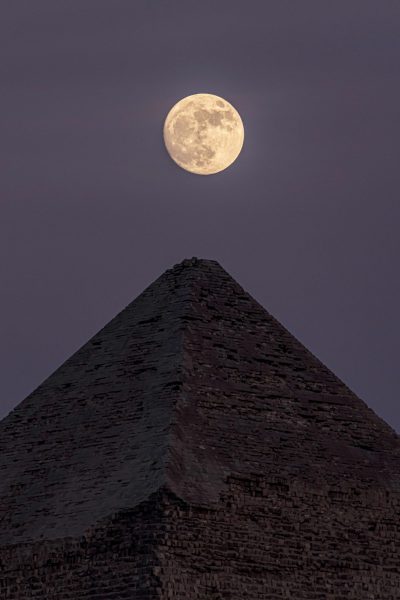 在埃及首都开罗西南郊的吉萨金字塔上空,超级月亮高高挂在卡夫拉大金字塔上空,让充满迷团的金字塔更显神秘气息。(法新社照片)