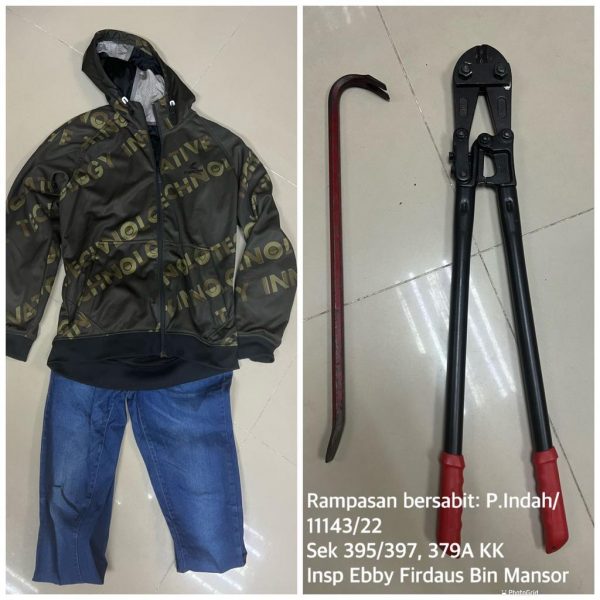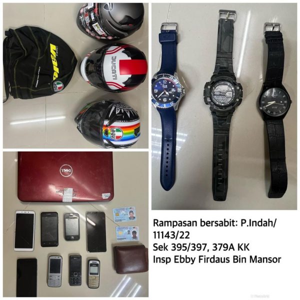 他说,警方接获投报后立刻展开调查,最终在今天凌晨1时15分根据情报,在加影锡米山金沙路旁逮捕了4名年龄介于29至42岁的本地男子,并起获10台手机、3枚手表、4个头盔、4双手套、3个背包以及干案工具等等。