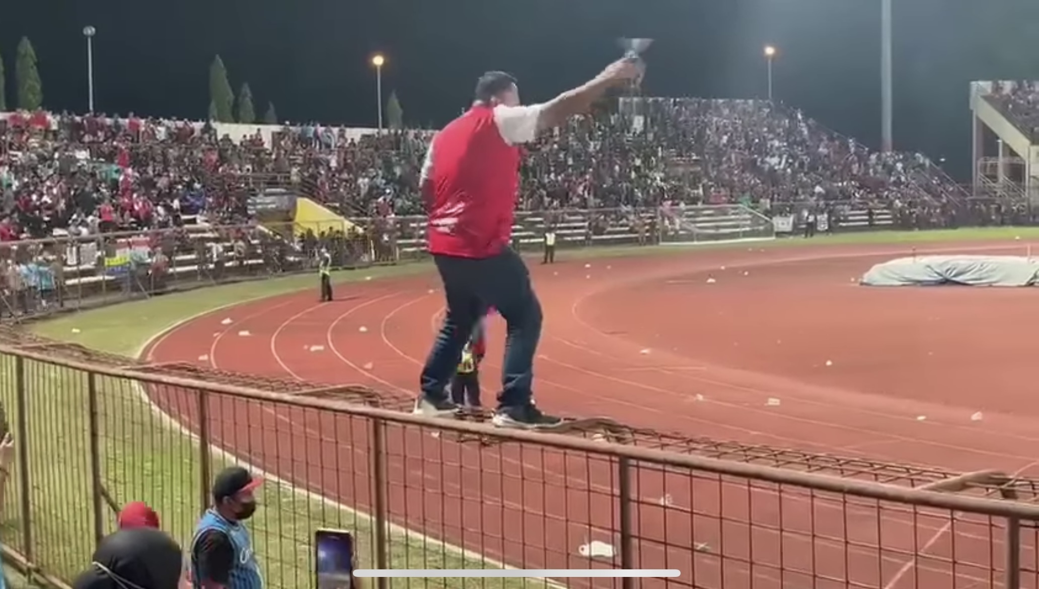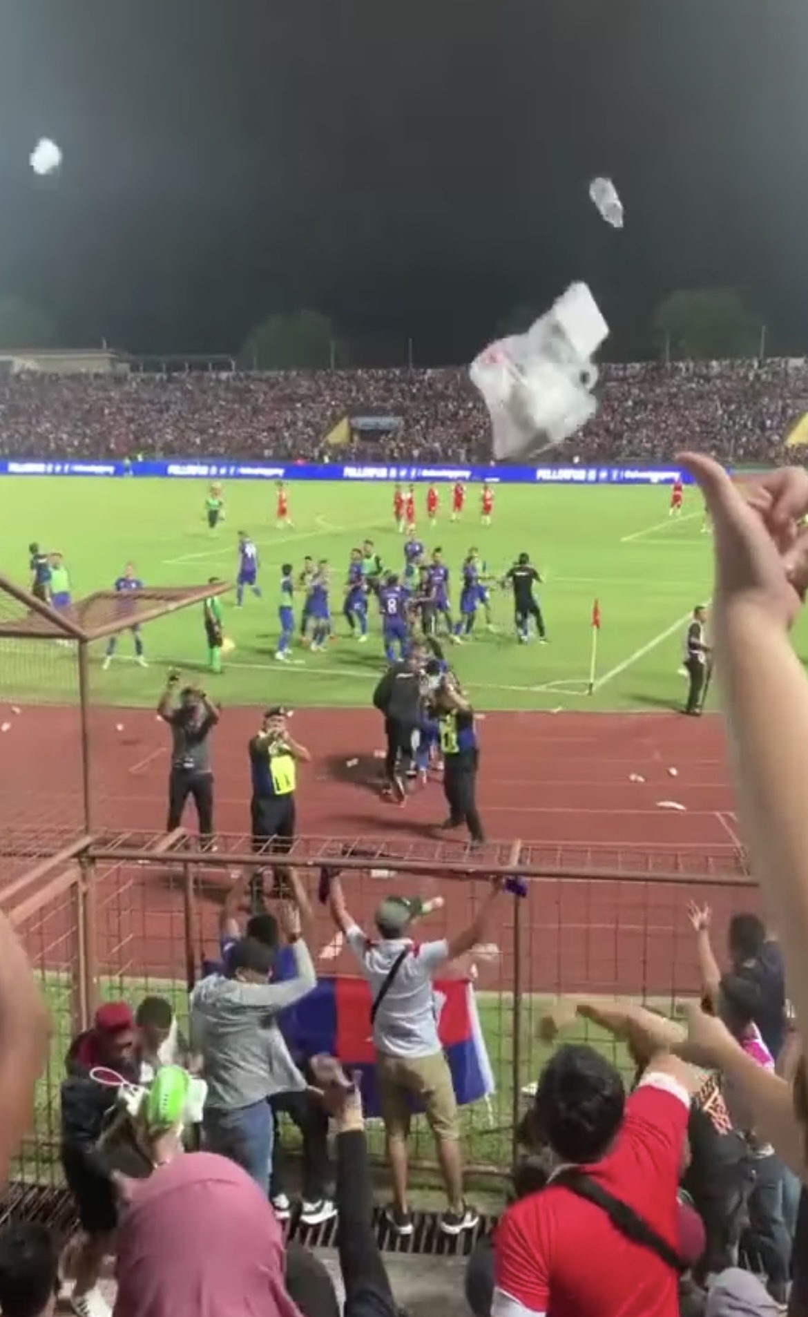 期间,有球迷爬上观众席围栏狂嘘,不顾警察劝阻。此外,也有球迷激动拆下柔佛州旗,一批球迷更发生口角,进而爆发肢体冲突,场面一片混乱。