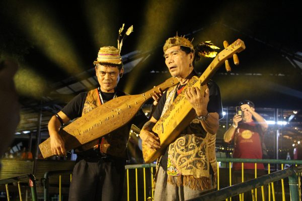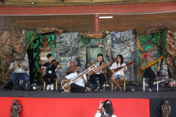 舞台上,有来自砂少数民族伦巴旺族的二弦乐器“tapi”、伊班族的而弦乐器“Belikan”、砂民族乐器沙贝、印度的西塔琴、西方的手提琴及印度竹笛。