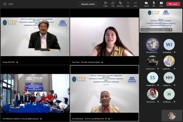 (吉隆坡17日讯)国油大学(Universiti Teknologi PETRONAS,简称UTP)和越南的Thanh Do大学日前举办协议备忘录(MOA)签署仪式,宣布深化两校跨国的合作。