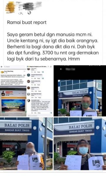 昨日,社交媒体上流传一则帖文,指有3名捐款者到巴生武吉丁宜警局报案,揭露关志庭的“伪善”之举。