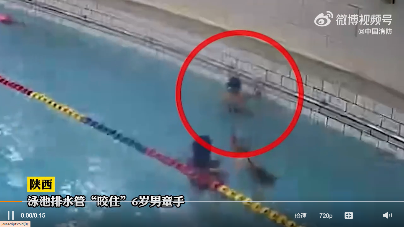 视频 | 6岁男童泳池独自游泳 手被吸入排水口急速下沉